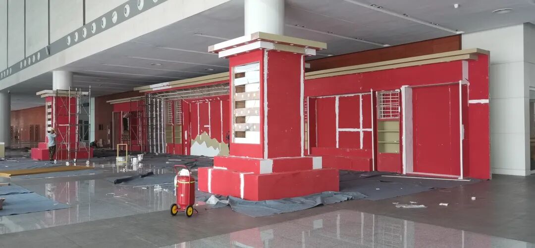 户外广告搭建墙体广告23日搭建工作将进入收尾阶段,24日布展,25日预展。
