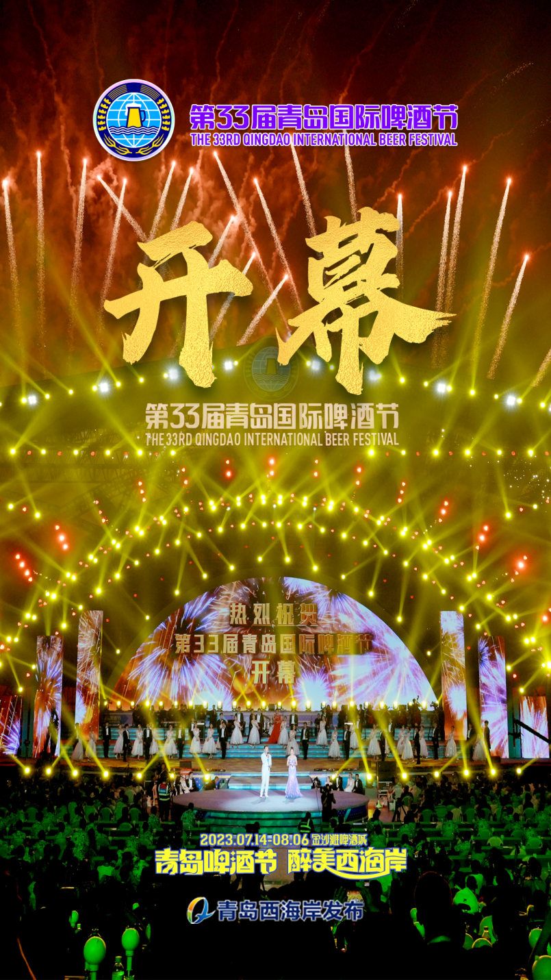 “青岛啤酒节,醉美西海岸。7月14日晚,第33届青岛国际啤酒节在青岛西海岸新区金沙滩啤酒城盛大开幕!开幕式在大型歌舞《干杯吧朋友》