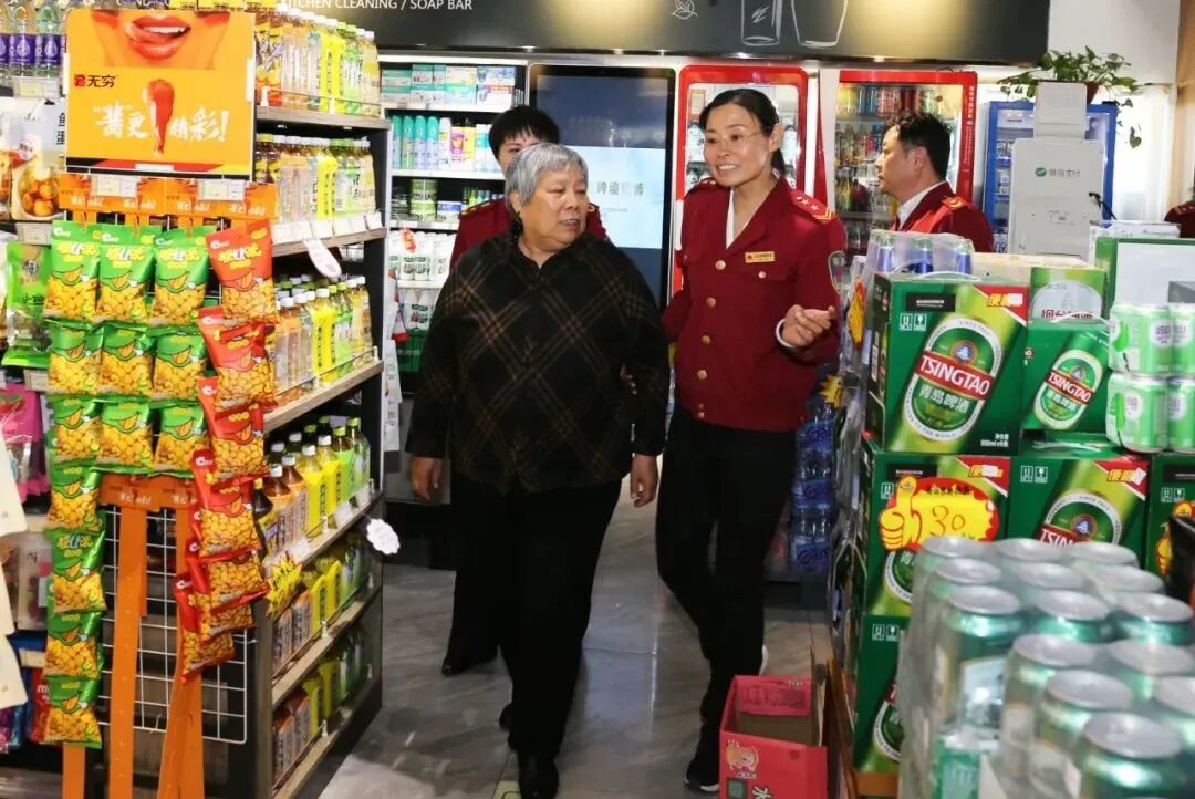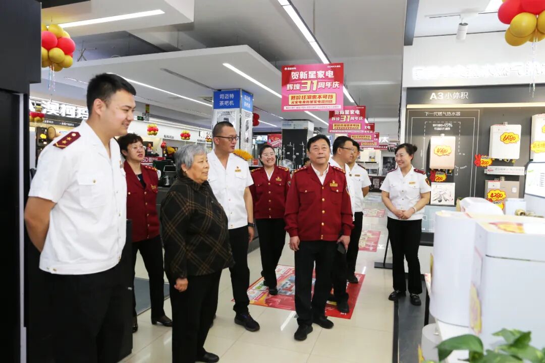 每到一处,陈福珍都向到店顾客问好,关切询问员工的工作生活和门店经营情况。要求新星员工传承全国劳动模范、新星集团创始人魏心东同志的劳模精神,永葆奋斗激情和勤俭作风,把诚信作为企业生命,坚守初心、服务创美,把更多欢乐带给千家万户!广大新星员工将深入传承魏心东同志的劳模精神,在陈福珍董事长的带领下,立足各自的工作岗位,大力弘扬劳动精神、奋斗精神,践行好“服务人民、奉献社会”的宗旨,传承创美,再攀高峰!