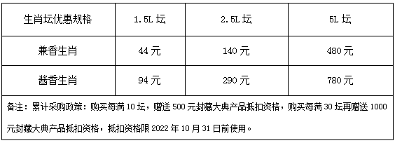 凡是在2022年10月31日前,交全款认储封藏陶坛老酒,可享受以下优惠: