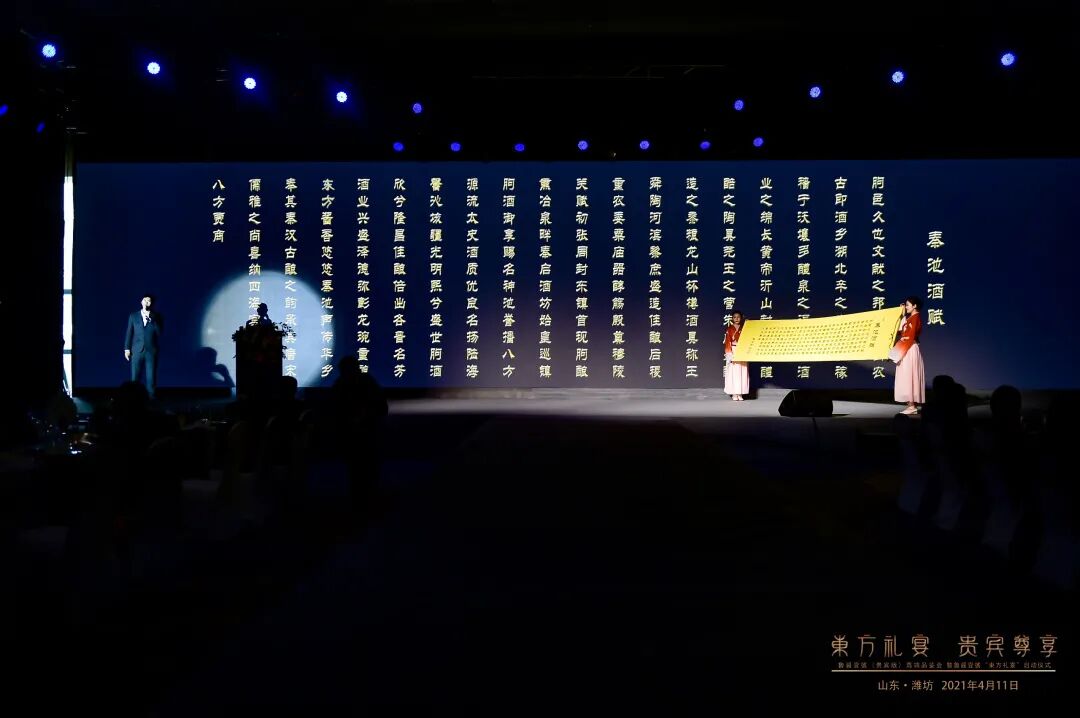 此外东方礼宴在细节上做到了精雕细琢,为嘉宾营造了除味觉外的,视觉、听觉、触觉上多重悦享的极致体验。宴会以《东方酒神,秦酒之源》的舞台剧拉开帷幕,穿插古筝伴奏的《秦池酒赋》颂读和东方礼宴进行中的表演,再以《千年传承,御赐神池》的话剧结尾,秦池用其极具东方文化色彩的方式为中国传统文化与鲁菜鲁酒文化做了一次很好的融合,把嘉宾带回到真正传统的东方礼宴。