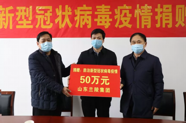 今年的2月6日,为支援新型冠状病毒防控工作,兰陵集团在积极做好防疫工作的同时,常务副总经理孙茂忠第一时间联络兰陵县慈善总会,通过兰陵县慈善总会捐款50万元,用于购买疫情防护物资送往疫情防控一线,以实际行动支援疫情防护工作。