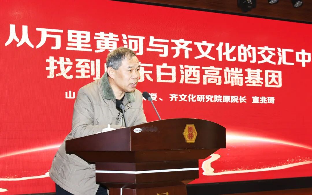 宣兆琦教授做了题为《从万里黄河和齐文化的交汇中探寻山东白酒的高端基因》的演讲。他从东夷文化中的山东白酒高端基因、齐文化中的山东白酒高端基因、《齐民要术》中的山东白酒高端基因、国井集团探寻山东白酒高端基因的努力等四个方面,从历史文化的角度充分阐释了“山东白酒高端基因”的由来。
