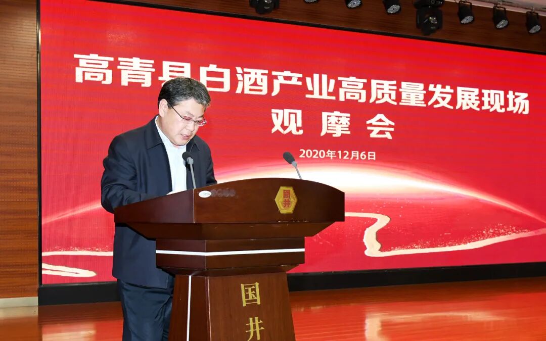 2020年12月6日,高青县白酒产业高质量发展现场观摩会在国井集团隆重召开。会议由高青县委副书记、县长杨新胜主持。中共高青县委书记王金栋出席并讲话。县经济开发区党工委副书记、管委会主任赵学民代表相关部门及单位做表态发言。山东理工大学教授、齐文化研究院原院长宣兆琦作主旨演讲。国井集团总裁赵纪文介绍企业发展情况。高青县有关部门、单位、规模以上企业、金融机构主要负责人,零售企业代表、经销商代表、消费者代表、新闻媒体记者等近300人参加了会议。