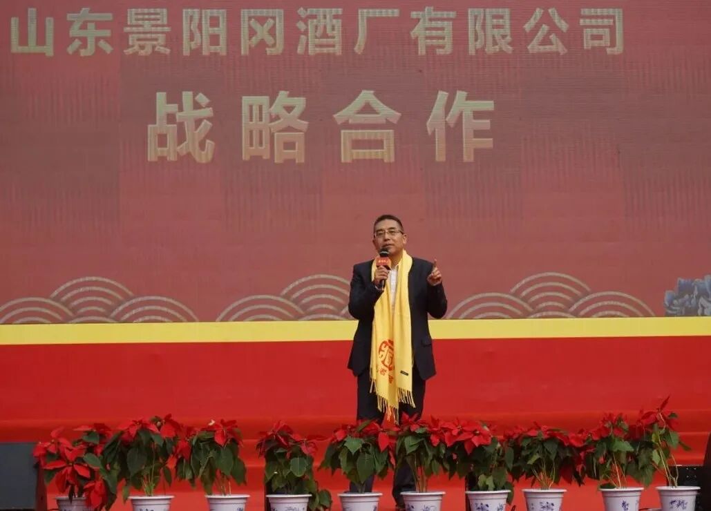 山东景阳冈文旅集团、山东景阳冈酒厂有限公司党委书记、董事长赵传新致欢迎辞,回顾了70年来一代代景阳冈人不忘初心、锐意进取的发展历程。近几年,企业突破了以酒业为主的单一性产业布局,初步构建了多产业、多业态并存的产业格局,实现了企业高质量发展。未来,企业将大力实施“品牌+基地”(一个景阳冈品牌,三个优质原酒生产基地)的经营战略和“一体两翼”(一手抓生产经营,一手抓资本运作)的运行思路,努力打造集“白酒主业突出、文旅色彩鲜明、产业融合科学、经济效益良好”的极具高质量发展特色的景阳冈产业集团,为地方经济建设和鲁酒振兴做出更大贡献。