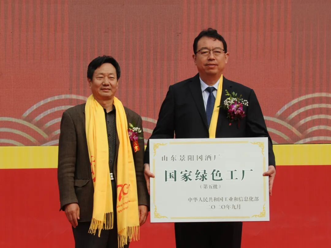 山东景阳冈酒厂有限公司被工信部认定为“绿色工厂”,聊城市工业和信息化局副局长陈玉庚为企业授牌。近年来,公司以实际行动践行《中国制造2025》,全面推行绿色制造,努力构建高效、清洁、低碳、循环的绿色制造体系,取得了较好的经济和社会效益。