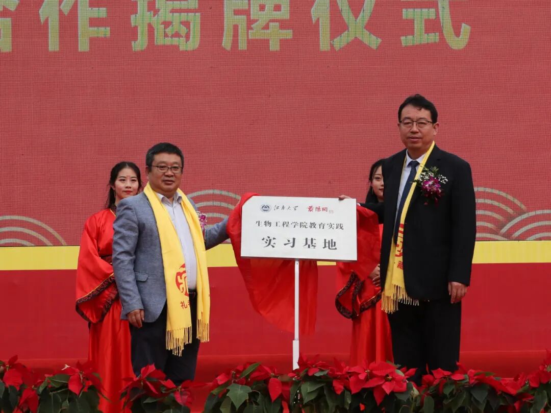 江南大学生物工程学院教授范文来和山东景阳冈文旅集团、山东景阳冈酒厂有限公司党委书记、董事长赵传新共同为“江南大学生物工程学院教育实践实习基地”揭牌。通过与江南大学生物工程学院的深入合作交流,必将进一步推动景阳冈酒的酿造工艺改善及技术创新,持续提升产品品质。
