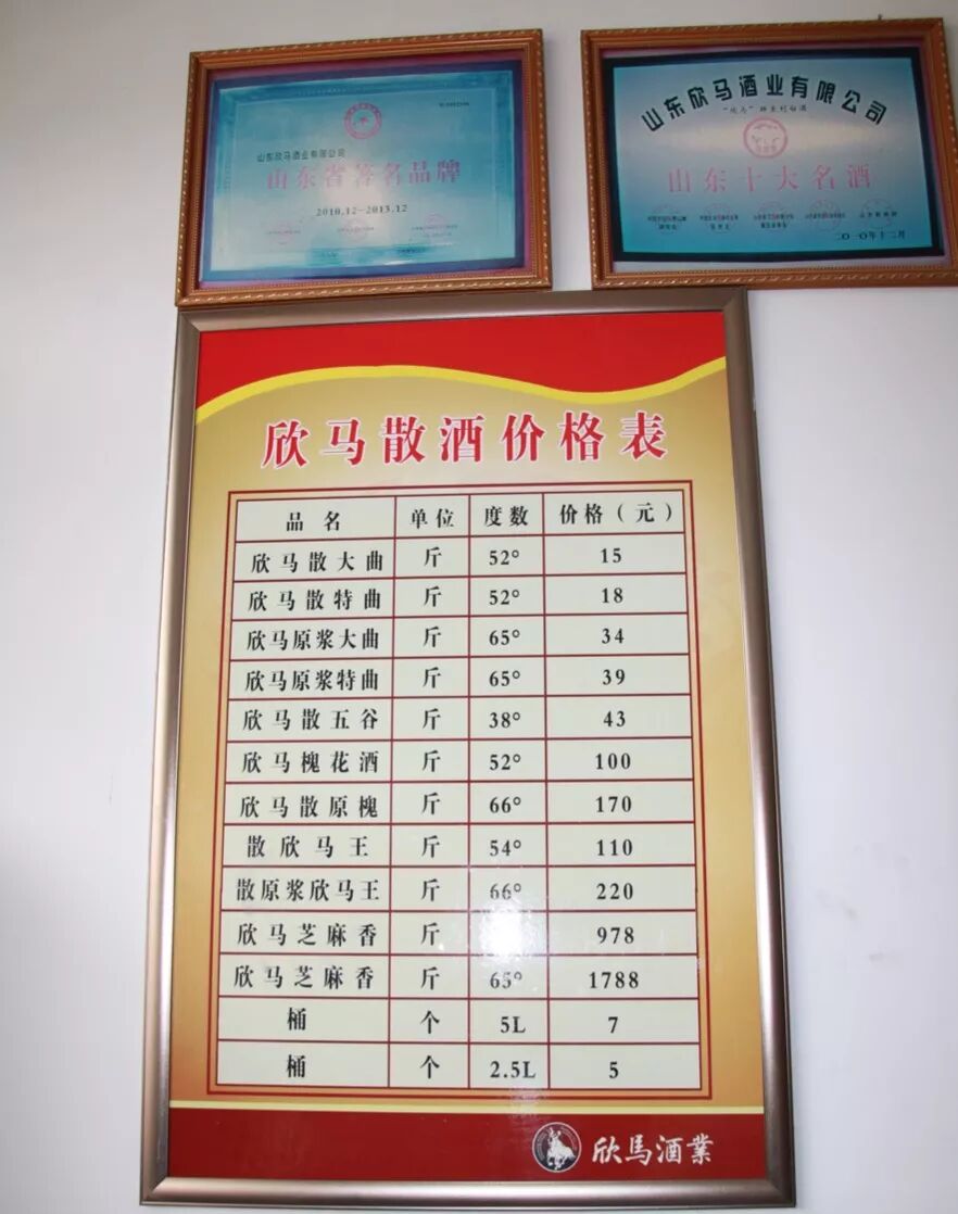 2017年,山东省商务厅为欣马酒业颁发“山东老字号”牌匾,“欣马”牌商标被评为“山东省著名商标”,“欣马牌”系列白酒被评为“山东省旅游商品十佳品牌”“到山东最想买的100种特色旅游商品”。在这些金字招牌的背后,蕴藏着欣马人创业的艰辛、守业的挚诚、独到的经营理念、精湛的技艺传承。