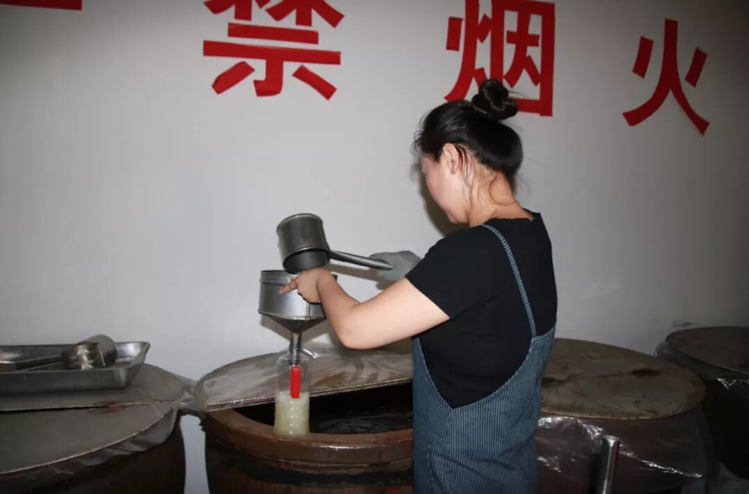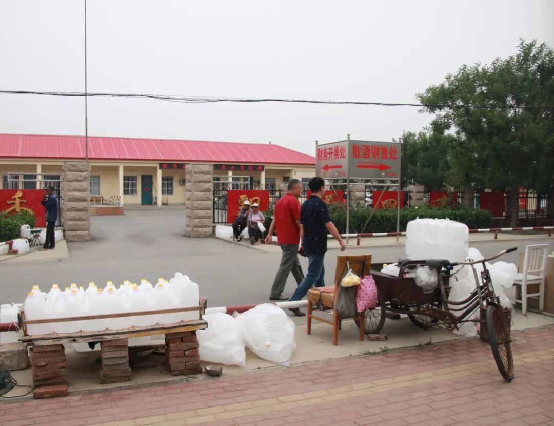 欣马酒业的风景线:路两侧的白色散酒灌装桶