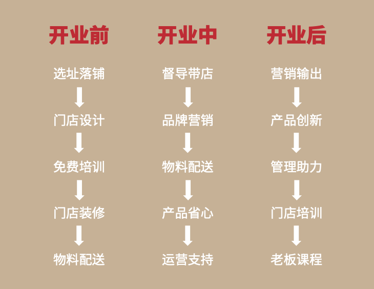 16大职能部门,1000+员工服务,1站式扶持开店,成功模式直接复制,让门店经营无忧。