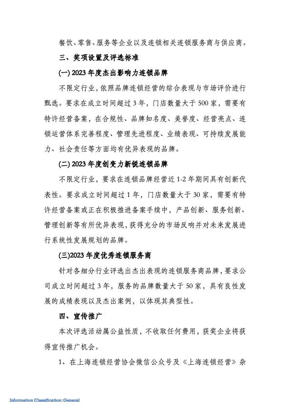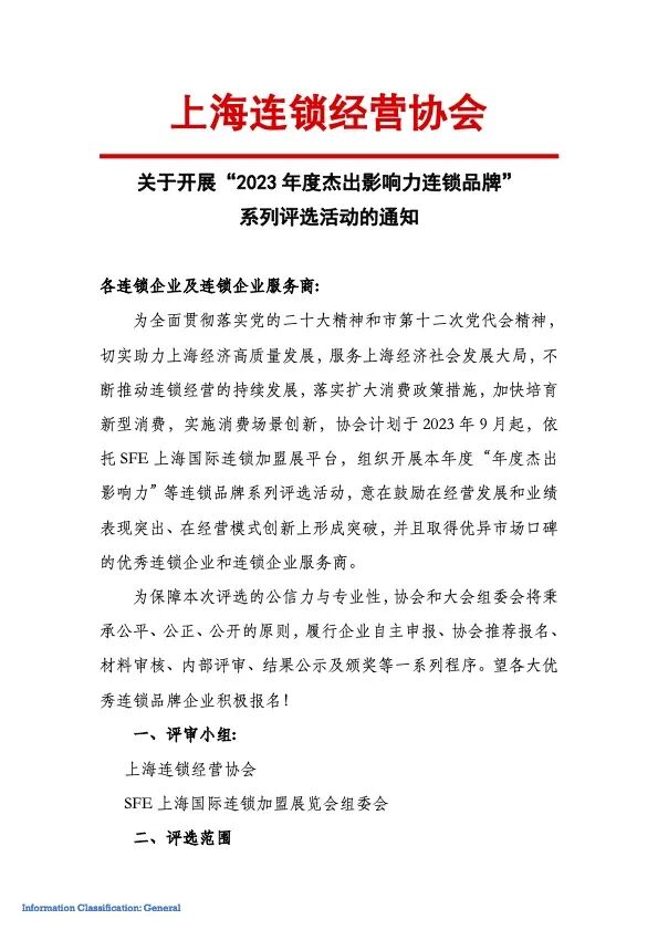 随着市场整合的持续深入,2023年,连锁行业依旧保持着高增长。为了进一步推动国内连锁行业的健康有序发展,同时为了表彰广大连锁品牌所取得的优异成绩,推广他们的成功经验与方法,上海连锁经营协会于2023年9月起,依托SFE上海国际连锁加盟展平台,特别组织了2023年度杰出影响力连锁品牌系列评选活动。对于积极开拓新的发展机遇,不断突破自我,促进行业进步,并且市场表现、市场口碑和经营业绩优异的连锁品牌,给予更加明确的发展指向及荣誉鼓励。2023年度杰出影响力连锁品牌系列评选活动包括: