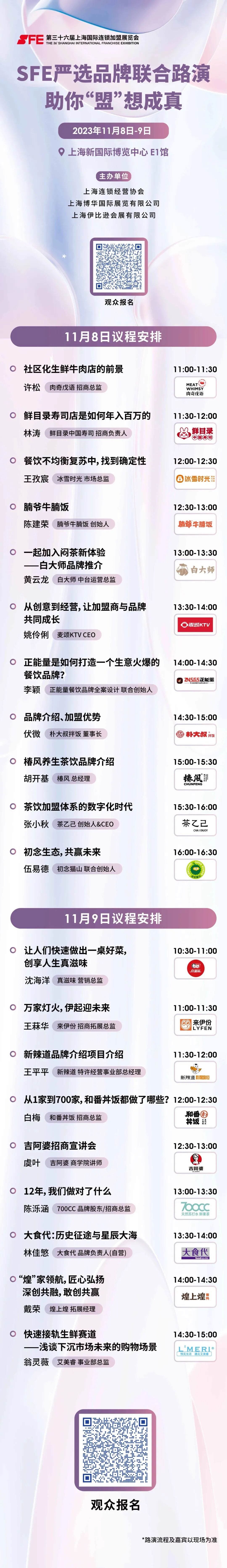 [温馨提示] 文章来源于SFE上海国际连锁加盟展览会,转载注明原文出处,此文观点与查生意无关,理性阅读,版权属于原作者若无意侵犯媒体或个人知识产权,请联系我们,本站将在第一时间删掉 ,查生意仅提供信息存储空间服务。