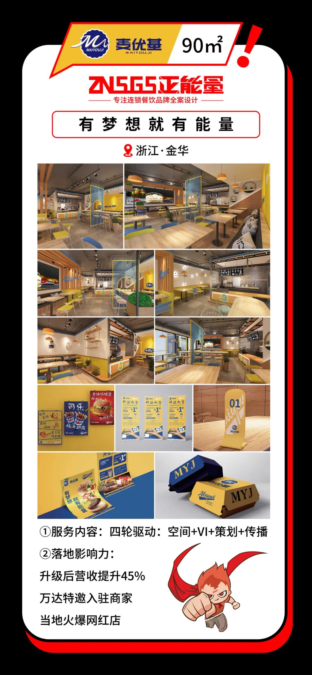 空间是品牌文化和品牌视觉形象的载体,是餐饮品牌销售运营、传播发声的重要阵地,在品牌空间设计中,正能量基于品牌文化核心、市场竞争环境与品牌未来发展规划,提供完整落地店铺空间设计:合理平面布局,坪效最大化;流畅动线设计,功能最大化;空间配色建模,文化最强化。