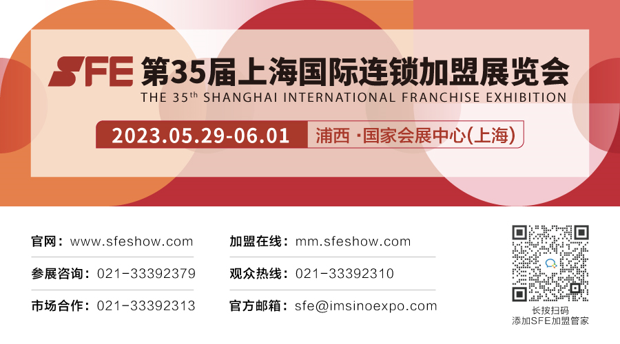 [温馨提示] 文章来源于SFE上海国际连锁加盟展览会,转载注明原文出处,此文观点与查生意无关,理性阅读,版权属于原作者若无意侵犯媒体或个人知识产权,请联系我们,本站将在第一时间删掉 ,查生意仅提供信息存储空间服务。