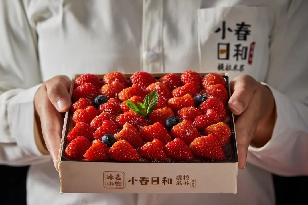 草莓均匀的铺满提拉米苏表层,洁白颜色仿佛演绎着日式浪漫,依次摆放着的草莓和蓝莓,增添了层次感。