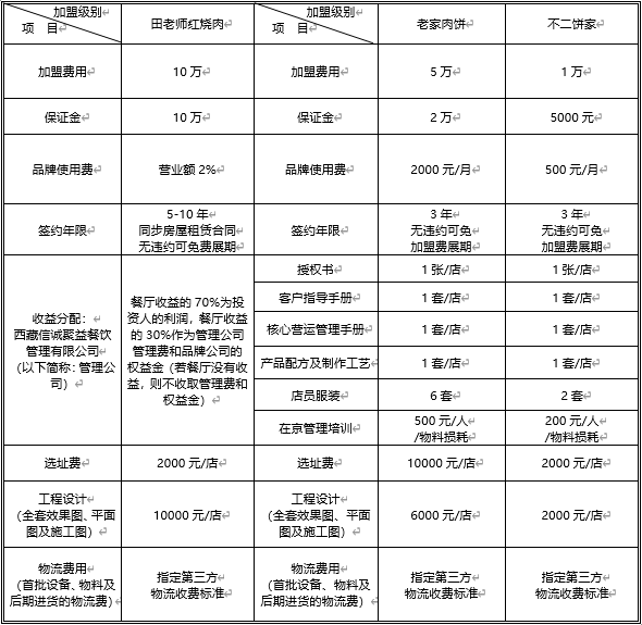 加盟违约保证金:10万元整(加盟期满无息退还)