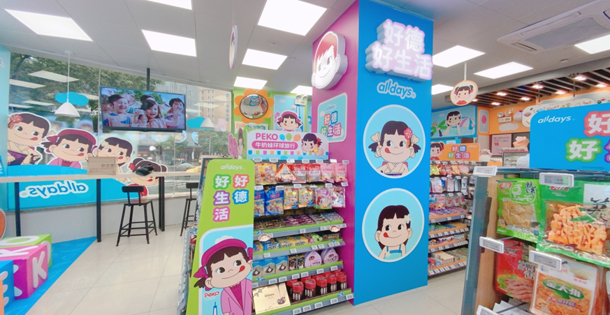 深耕江浙沪20年的好德便利店和可的便利店,旗下众多门店被授牌上海早餐示范点,并依托农超集团的集采配配功能,将各种小规格的果蔬每日配送到便利店,极大地丰富了生鲜品类,并且还与不二家、好时以及炫动卡通哈哈少儿频道等合作,打造多家联名主题店,在提供新鲜便捷的产品的同时,以更加活泼潮流的场景,为年轻消费者带来更多乐趣。