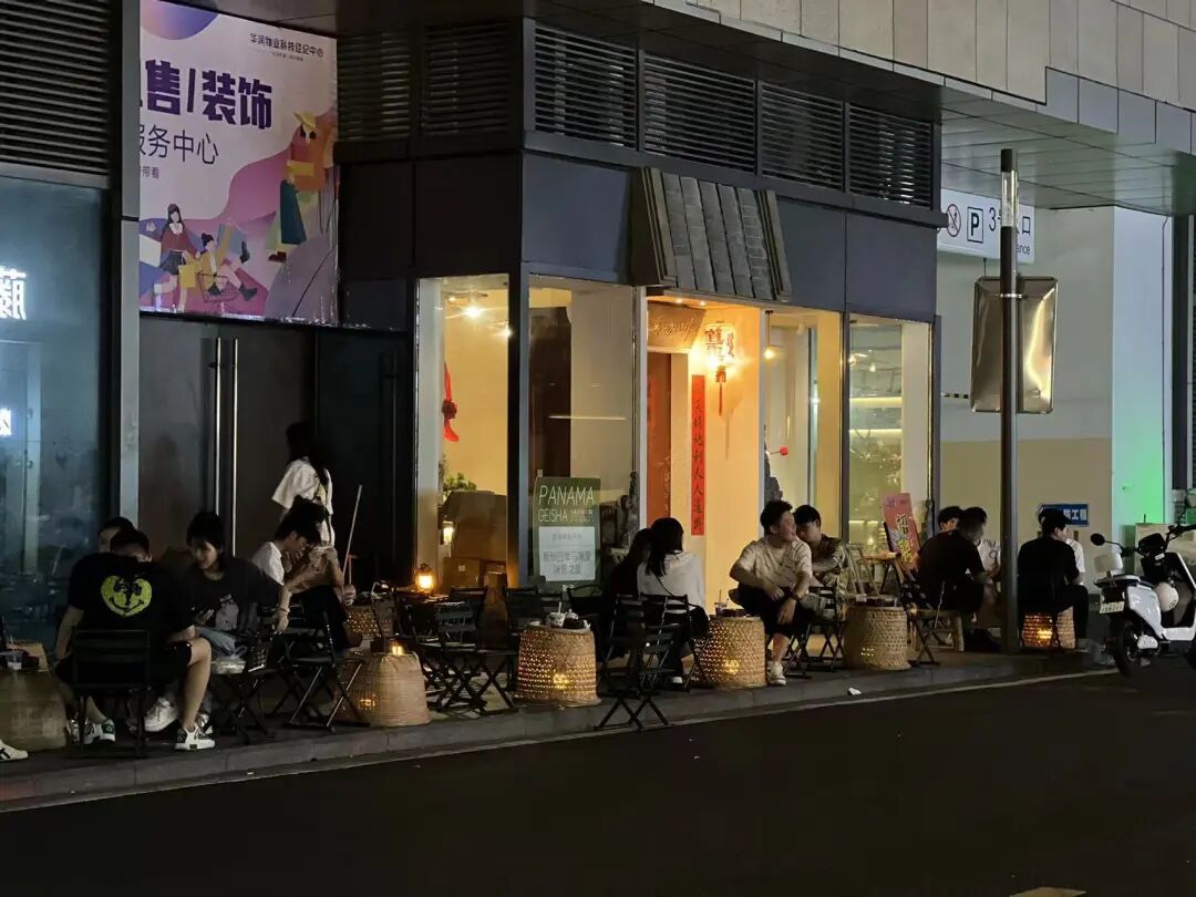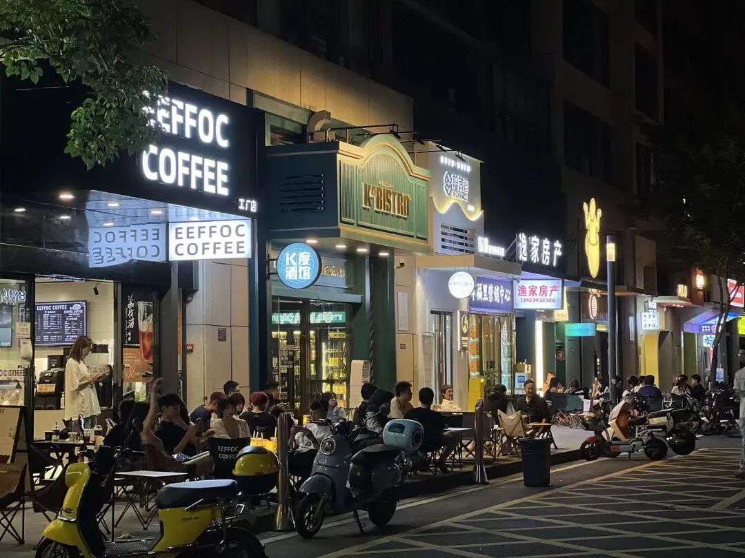 有趣的是,晚上10点走到这条街,你会发现,每家咖啡馆门口都摆放着座椅,坐满了喝咖啡的年轻人,热闹程度堪比夜市美食街。