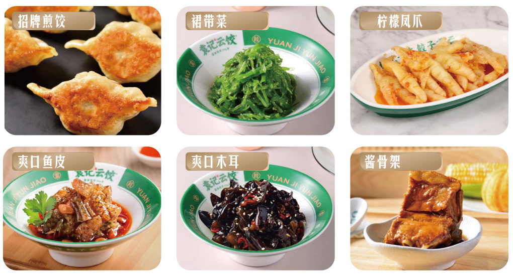吃饺不吃面,质感少一半,面条在广式美食中占有一席之地,虾仔面,全蛋面,爽滑拉面,蛋炒面等臻品生面制品,每一款面条都劲道有嚼劲,外滑内筋。不论是汤面还是拌面,袁记云饺生面都是万能搭配,打造一款属于自己的舌尖上的面馆。