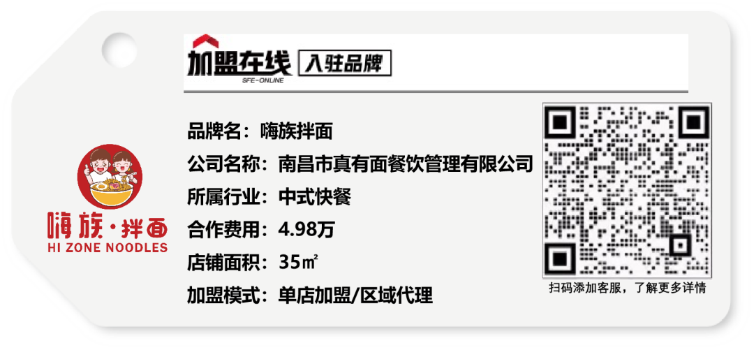 【一键加盟】招牌杂酱面全国日销15万份,嗨族拌面有哪些加盟优势?