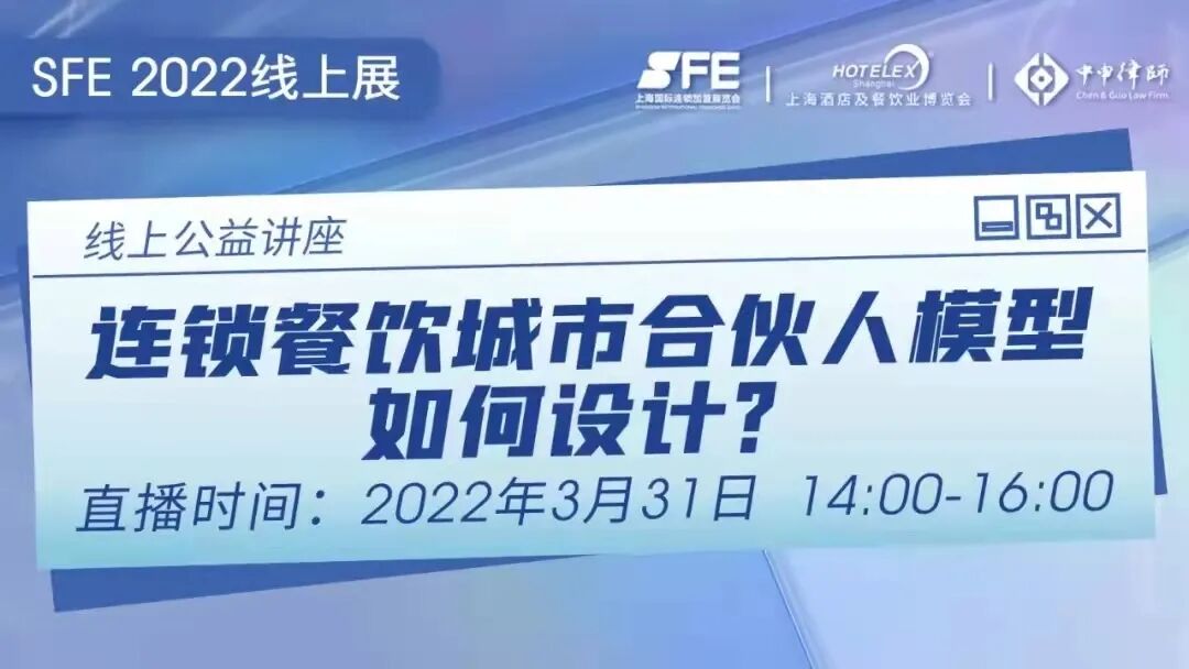“洞悉投资热点,云享开年商机“SFE 2022线上主题展即将全面启动,打造特殊时期下,促进品牌方与专业投资人之间的高效链接与加盟成交的线上平台。3月28日13:00-17:00,本次线上展首场云加盟配对会—卤味品牌专场,8大细分业态头部标杆品牌和实力新锐品牌齐聚,深度剖析卤味市场商业逻辑,把握卤味赛道加盟投资商机。