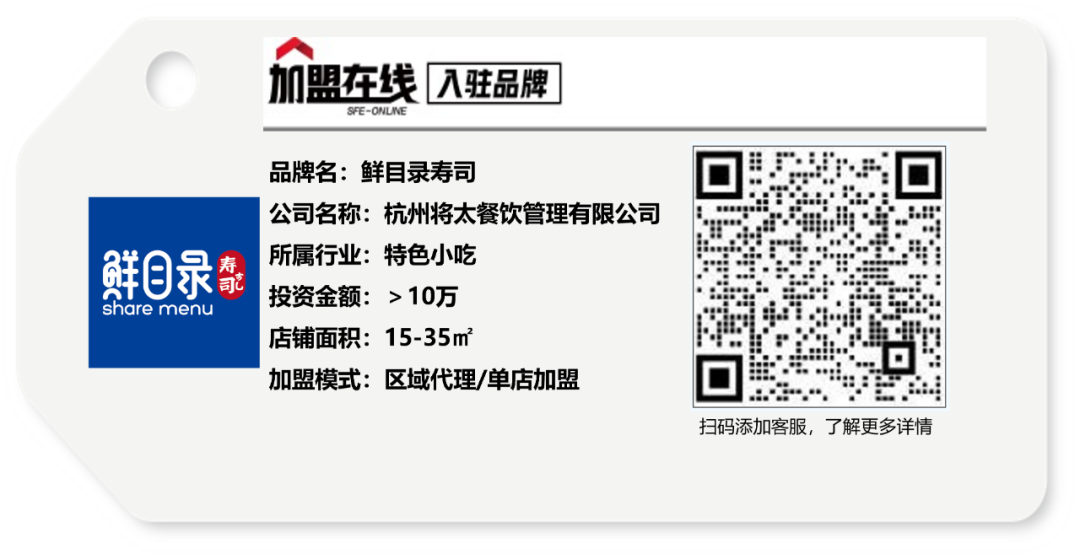【一键加盟】国内熟料寿司连头部品牌,鲜目录年销售超过5亿枚寿司背后的商业密码
