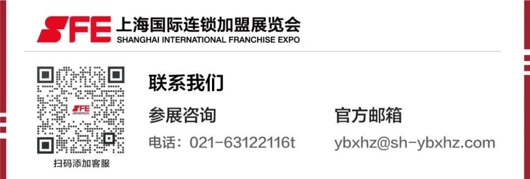 [温馨提示] 文章来源于SFE上海国际连锁加盟展览会,转载注明原文出处,此文观点与查生意无关,理性阅读,版权属于原作者若无意侵犯媒体或个人知识产权,请联系我们,本站将在第一时间删掉 ,查生意仅提供信息存储空间服务。