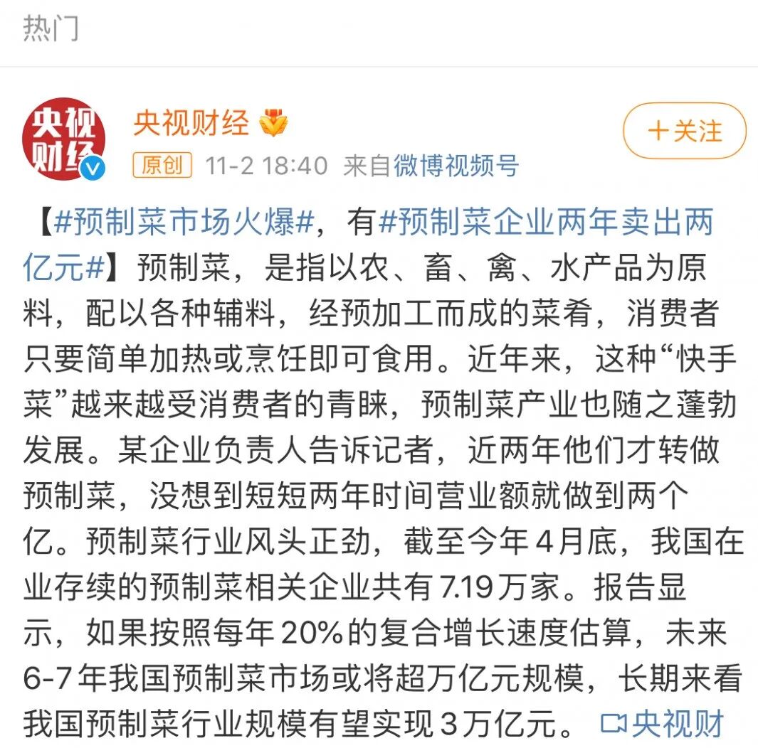 预制菜的火爆,市场接受度极高,甚至引起了央视财经的注意和报道。