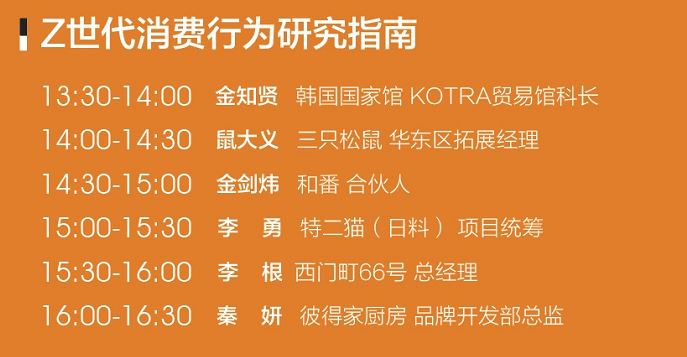 关注Z世代消费行为研究,我们邀约韩国贸易促进会、三只松鼠、和番丼饭、特二猫、西门町66号、彼得家厨房等备受年轻消费人群追捧的热点品牌代表,为您呈现他们对Z世代消费行为的深刻理解和成熟的商业应用案例。