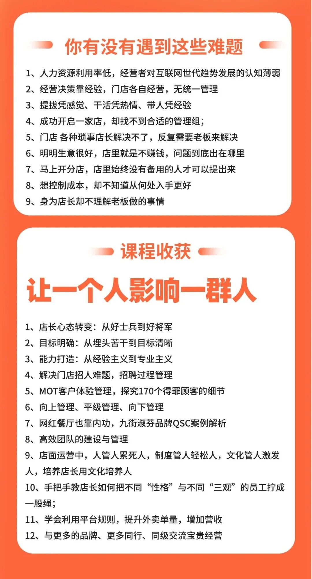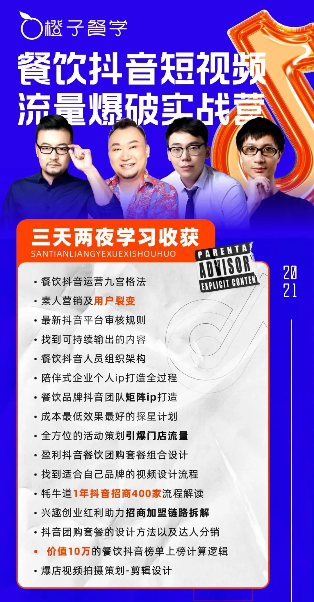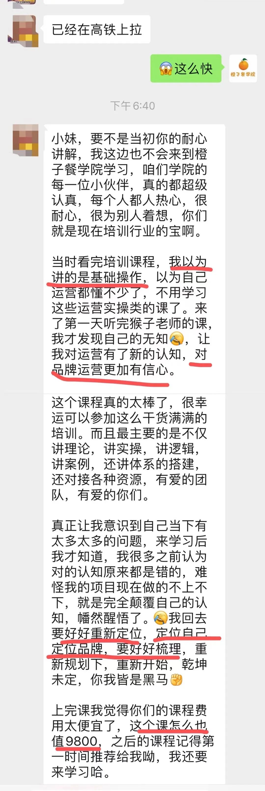 橙子餐学一直深耕餐饮数字化运营管理人才培训,致力于帮助餐饮公司及门店从数字化管理,数字化运营,数字化营销人才等方面,更好的进行餐饮数字化转型与升级,在这场餐饮数字化浪潮中,能跑的更稳看的更远。为此精心打造了《外卖实操训练营》,《餐饮私域流量运营实操班》,《大众点评运营实操班》《餐饮抖音短视频流量爆破实战营》《餐饮数字化全能型店长课》等课程为餐饮品牌持续培养数字化运营管理人才。帮助餐饮品牌搭建数字化人才系统,实现精细化运营,以及管理上的创新,面对日新月异的行业做出最智慧的决策,让餐饮品牌实现品牌数字化,标准化,规模化的转型与升级。