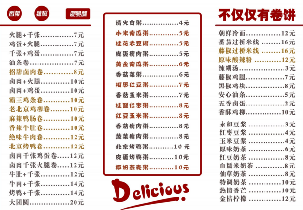 现如今良记卷饼以全新的店面形象,产品包装,以卷饼+x的模式,拥有卷饼系列、赤糊桂花粥、养生粥系列、主食系列、小吃系列、茶饮系列等产品矩阵,更加适应了各个阶段顾客的需求,并以丰富的连锁经营经验,让越来越多的人能够认识并爱上良记卷饼!