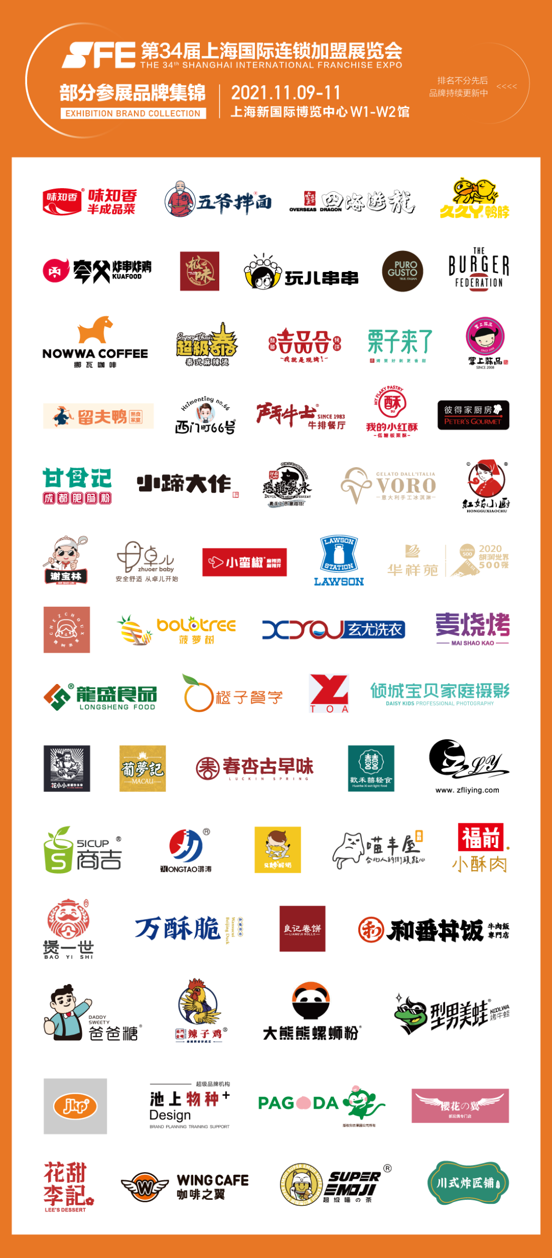 更多热点,更多大牌,更多精彩!11月9日—11月11日,上海新国际博览中心,SFE第34届上海国际连锁加盟展,诚邀您的莅临。