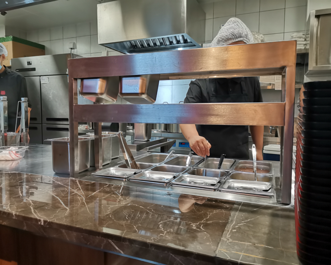 其实陆正耀对趣小面这一项目可谓是格外重视,在丧失瑞幸咖啡控制权后,他期待通过这次创业为自己再次正名。面食赛道近年来饱受资本青睐,各种融资、上市新闻层出不穷。从味千拉面、和府捞面,再到遇见小面,各种细分面类品牌在自己的赛道上走出了名堂。资本前仆后继进入面类市场的重要因素是面食快餐领域容易实现标准化,标准化的前提下谁的供应链更成熟,谁就能在竞争中占据优势地位。无论是五爷拌面,霸蛮湖南米粉,还是和府捞面,都在获得资本融资后表示要将所融资金用于强化供应链体系上。趣小面的做法也是如此,宣传资料显示,品牌要通过前端App、中端门店、后端工厂的全流程把控,打造自己的供应链工厂。而根据品牌手册示意图,趣小面没有后厨,与瑞幸的自动咖啡机类似,炒菜锅等厨具也是直接放置在吧台上,无需人工过多干预,这种标准化意味着更低的人工成本、更高的效率和更快的拓店速度。也许是基于这种思考,趣小面甚至没有尝试给自己的品牌找到一个鲜明的记忆点,显得非常平面化和互联网化,logo和品牌字体仿佛一个手机app。