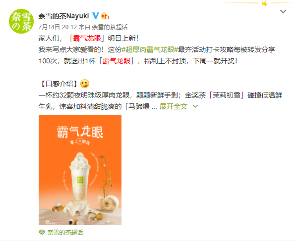 比如奈雪7月上新的霸气龙眼,就强调本身北纬18~28度黄金产区、约22mm以上果径、厚肉等要素,多道工序加工,提高产品价值。