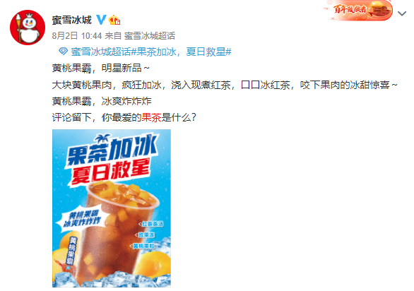 根据喜茶公布的数据,喜茶2020年开售的所有产品中,最受消费者欢迎的top5产品80%都与水果有关。七分甜主打产品“杨枝甘露”,主要配方就由芒果、西柚粒、椰浆等水果组成。在全国开遍一万多家店的蜜雪冰城,同样有像杨枝甘露,以及柠檬、黄桃、蓝莓等水果作为热销爆品。