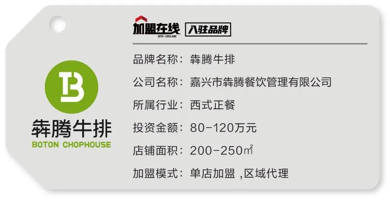犇腾牛排于2008年在嘉兴开出第-家牛排餐厅,严选好食材追求好工艺,严把食品关,努力把健康美味的牛排带给大家分享,创始人庄今宝军人出身的基因让犇腾在发展的十年中一步一个脚印,从一而终,我们坚信一定可以呈现一份犇腾绿的好牛排。目前在华东、华中和华南共有70家餐厅,未来,我们依然坚信专注一块牛排,犇腾将创造出更多惊喜。