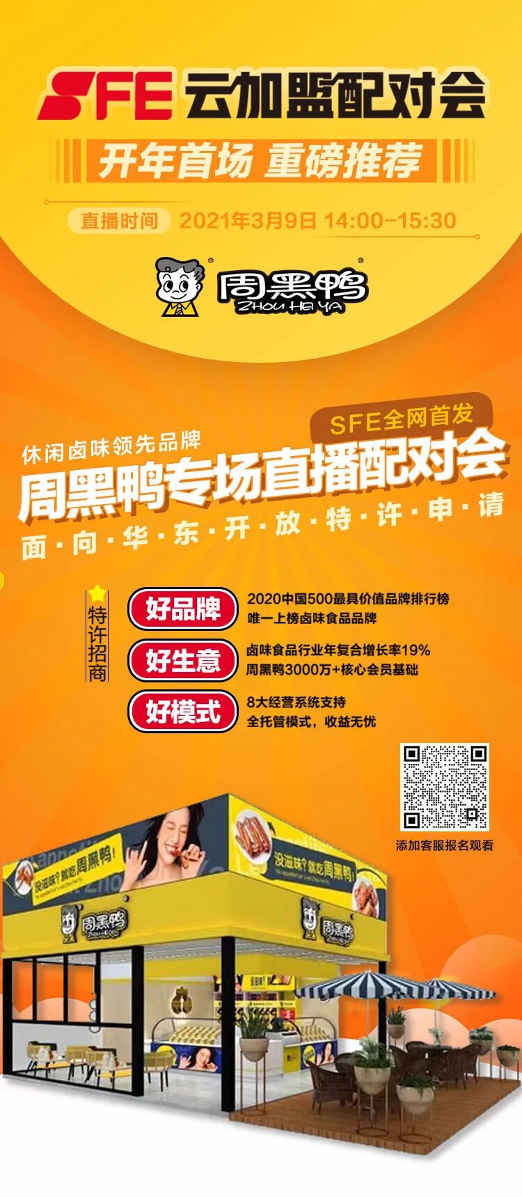 【SFE云加盟配对会】开年首场预告:周黑鸭正式开放华东地区特许经营