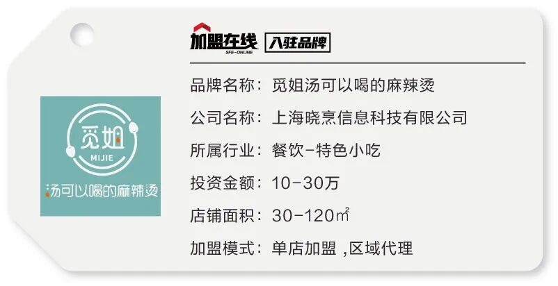 上海晓烹信息科技有限公司成立于2016年,是一家致力于餐饮项目孵化的专业机构,以弘扬中华饮食的使命,解决中小型餐饮企业痛点为职责,为更多商家创造利润为目标,以互联网为载体,打造一个共享餐饮的创新模式。 2017 年6月旗下产品“觅姐汤可以喝的麻辣烫”成立于上海,在江浙沪、武汉、北京等地区开店两百余家。觅姐未来两年计划将在全国开店 3000 家以上,成为一个线上流量巨大,线下实体店红火的多渠道发展模式。旗下品牌“觅姐汤可以喝的麻辣烫”“贝嫂创意汤底麻辣烫”等品牌