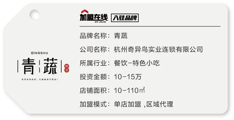杭州奇异鸟实业连锁有限公司隶属于浙江博多控股集团有限公司。总部从事餐饮/饮品行业19年,拥有10000家直营店及加盟门店管理经验,业务涉及及项目投资管理、原物料生产供应、品牌运营及加盟连锁等。 青蔬捞烫是餐饮在运营的品牌,推出目前为止已经发展1800多家店,最具格调与健康观念的非传统麻辣烫,打破传统麻辣烫汤底单一,重油 、重盐、重口味、青蔬甄选十八种食材熬汤,不同的选择带来不同的自然味道,广受大众好评。