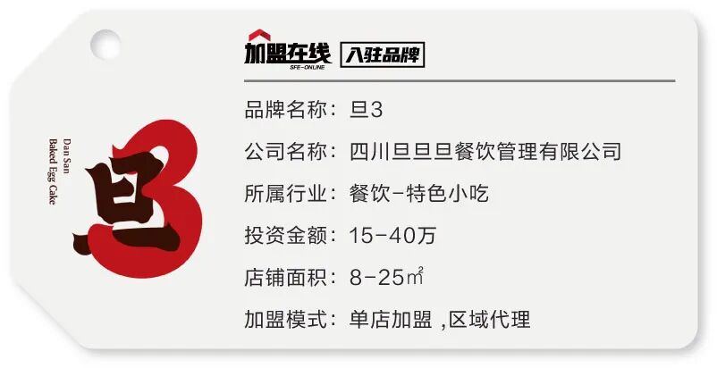 旦3,通过对成都名小吃蛋烘糕的标准化研发、并加以互联网科技改造,致力于成都传统饮食文化的传承。公司拥有自身的行业背景,广泛的商业资源关系,具备高度职业化、专业化和规模化的运作能力,并依托吴铭餐饮集团的雄厚技术,首次将蛋烘糕标准化推广开来。旦3成立一年多以来,已有近百家店遍布全国,公司将不断完善产品线和供应链体系,将成都的传统美食推向全球。