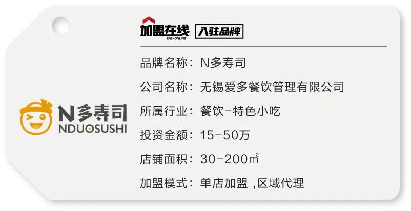 N多寿司创五星品质,树行业先锋。品牌经过8年多的发展与历练,队伍不断壮大,专业素质不断提升:采购,研发,培训,售后服务,策划设计,连锁店运营,加盟店管理……各个职能部门精密配合,近百人的品牌运作服务团队。与广大加盟商一起,不断将N多寿司事业推向新高。