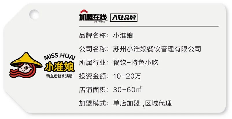 苏州小淮娘餐饮管理有限公司2004年起航第一家店,2007年以“鸭血粉丝、锅贴等”为特色经营的连锁品牌,2010年拥有8家直营店,2013年进行品牌升级,2015年第一家升级店开业;现总部位于美丽的江苏苏州。 2017年,苏州小淮娘餐饮管理有限公司“鸭血粉丝”、“鸭肉锅贴”系列经过中国饭店协会层层筛选,获得评委专家组及美食各界一致好评,喜获“中国名小吃”荣誉称号。中国饭店协会一直大力培育中国美食名店,积极推进餐饮行业的健康发展。同月,中国饭店协会正式授予苏州小淮娘餐饮管理有限公司“中国餐饮名店”称号;此次授予使小淮娘在餐饮业产生了广泛的影响,并得到同行的高度关注。次月,在全国餐饮绿色工作委员会发起的全国餐饮企业评选中,小淮娘脱颖而出,荣获“三叶级国家级绿色餐饮企业”的荣誉称号,小淮娘餐饮的实力已逐渐获得社会各界的高度关注、认可和支持。 目前总公司下属7个分公司,门店数量800余家,遍布江苏、浙江、上海、广东、河南、四川等20多个省市自治区。门店员工人数达到千余人。2018年新增拓展门店近1000家,预计到2019年底,公司将完成全国2500家门店的布局。迅猛的开店速度,为广大员工提供了