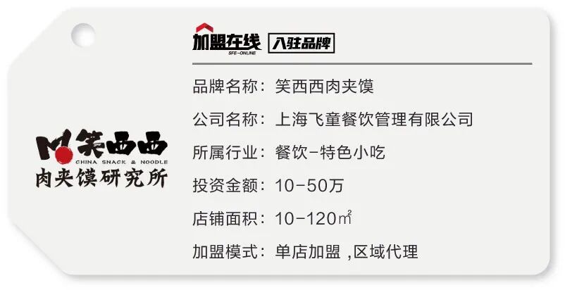 笑西西肉夹馍研究所,是上海飞童餐饮管理有限公司旗下的快餐连锁品牌,是中国专注于西北快餐特许经营的连锁品牌。品牌受众定位于追求品质消费的年轻群体,立足于大西北,发掘,融合,创新西北五省风味,以西方快餐的精细化研发思维,围绕好吃而非正宗的理念,以日式精致出品方式,赋新大西北地方美味,提供更有品质的特色餐饮消费体验。笑西西以生态系统的全新视角,致力为加盟商构建一个专注于西北快餐的生态系统,成就一万个幸福家庭。