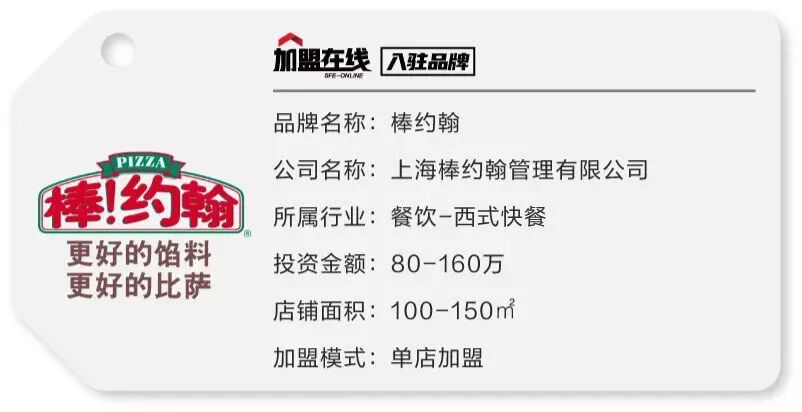 PAPA JOHN'S是全球著名的PIZZA连锁企业。1985年成立于美国印第安纳州的杰佛逊维尔市,至今在全球已拥有4400多家门店,并连续11年获得"美国顾客满意度调查(ACSI)第一名"。其除了选用纯正口味的原材料、制作出高品质的美味PIZZA外方便迅捷的外送服务也吸引了全球的消费者。 在中国,PAPA JOHN'S(棒约翰)餐厅不但保持了一贯高品质的产品制作外,为了适应中国的发展,还推出了“少量堂食+外送”的全新外送餐厅经营模式,国际品牌不摆谱,以低投入的模式迅速占领了中国PIZZA市场的半壁江山。 上海棒约翰餐饮管理有限公司成立于2002年,负责美国papajohn's在中国华东、华南地区直营及加盟业务。时至今日,上海棒约翰餐饮管理有限公司已在华东、华南地区成功地开出了160多家餐厅,此外还在计划以每年近30家的速度拓展