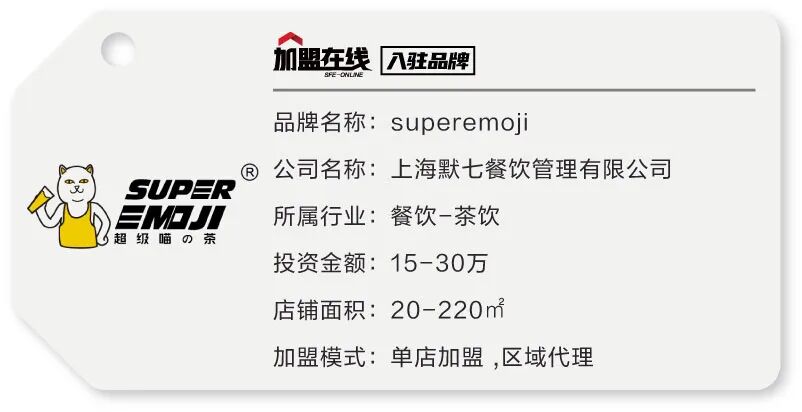 超级喵的茶super emoji隶属于上海超级喵餐饮管理有限公司,公司长期对于餐饮类食品生产制作有着严格的控制标准,对于如何打造一个专业化的市场发展项目,公司更是有着自己的选择方式。超级喵的茶加盟连锁品牌是公司推出的现代茶饮市场上的热门创业项目,如今已经在除了上海地区之外的杭州、天津、北京、广州等多个地区进行推广。