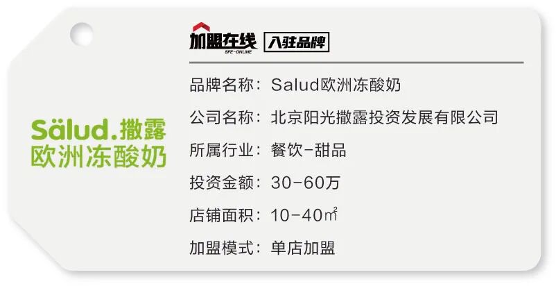 Salud(撒露)源自有“美食家天堂”之称的西班牙,它选用欧洲进口脱脂牛奶为原料,配以数种新鲜水果,再加上欧洲进口的多种香脆伴侣和甜美酱料,顾客可以发挥想象力,根据自己的喜好创造独一无二的冻酸奶。目前,Salud(撒露)从欧洲全球快速发展,作为一道舌尖上的美味,每到一个国家,它都会受到人们的热情追捧,越来越多的人正在快乐享用。