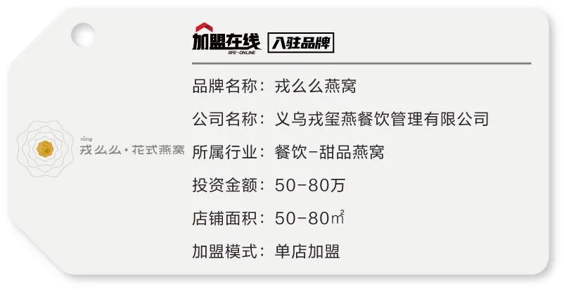 戎么么(戎嚒嚒)燕窝品牌成立于2015年 从最初经营燕窝干货,海参、鱼胶,虫草等高端滋补品为主的公司,基于对市场和消费者的敏锐研判力,经过多年试错沉淀打磨转型为实体门店和线上销售相结合的新零售模式,消费者可到店体验或足不出户享受燕窝全国冷链配送 产品由米其林三星倾力打造,以32元吃燕窝,让更多年轻消费者接触燕窝,门店产品主要涉及燕窝饮品,燕窝甜品,燕窝炖品等。打破传统只喝纯燕窝的方式,融入各种口味的辅料以及粥系列,开创健康又好吃的花式鲜炖燕窝,为各种人群需求提供定制化的服务产品。我们以“高端滋补品更加平民化”为经营理念,打破传统滋补品价格垄断,做多数人都吃得起的燕窝品牌!