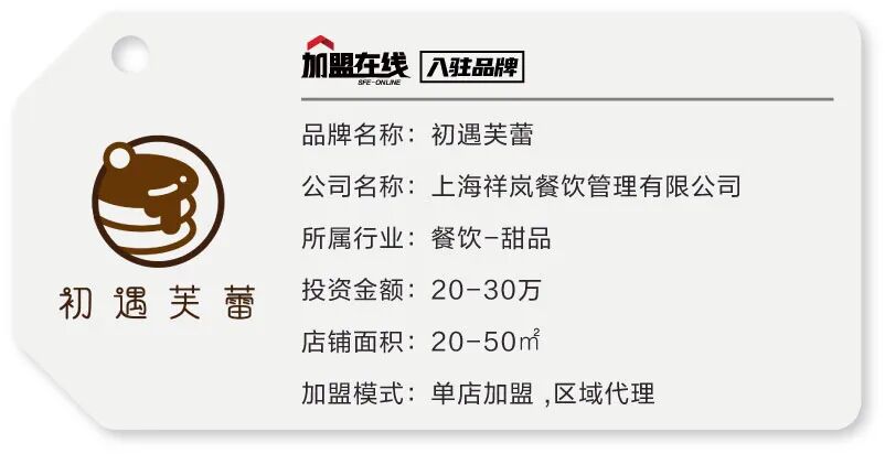 「初遇舒芙蕾」是国内第一家主打各类城市的速食精品烘培品牌,结合人群特征和消费习惯,针对性改良日式舒芙蕾产品,标准化强、操作性强,更小投入,更快节奏抢占崛起的甜品市场。舒芙蕾松饼轻盈可口,松饼则松厚绵密,两者看似泾渭分明,但结合日式美食大师的匠心工艺,把舒芙蕾的蓬松融于松饼的层次,创新出亚洲风味的雪芙舒芙蕾。