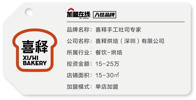 喜释始于2014年,至今已有35+门店,拥有占地4400㎡的FSSC22000认证的国际资质标准的中央工厂。喜释传承140多年的传统技术,精选进口安佳黄油等健康食材,独创老面发酵冷面团技术,4小时老面发酵,每一份吐司都坚持243次手工捶打。喜释产品线以招牌手工吐司为主;曲奇,汉饼等为辅;衍生高级定制礼盒以及高端酒会商务下午茶和烘焙培训服务,是集自主供应链和销售渠道为一体的新型烘焙品牌。