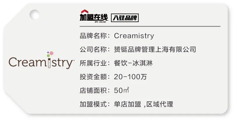 Creamistry品牌诞生于2013年美国的西海岸,创始人Jay和妻子耗时2年,首次为加州带来创新液氮制作工艺。2013年全球首店位于美国加州尔湾市橙县,开业当天引爆了各大网红博主争相打卡,当天排队人数超过1000+,排队时长长达4h+。截止至2020年2月,Creamistry连锁品牌店铺数量在全球达到了200+ 。2019年7月在中国上海成立了亚太区总部,同期静安区工厂店开业。国内首家旗舰店位于上海市黄浦区打浦桥日月光1F,正式启动了“中国合伙人”战略合作,开拓国内超炫酷、高品质、性价比超燃的硬冰头部市场!